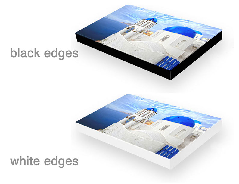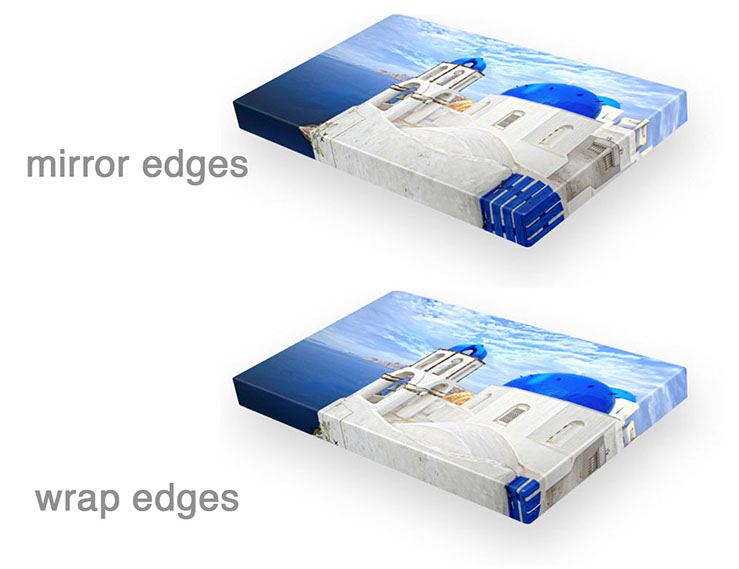 We can offer you two wrapping options for your stretched art canvas orders: museum-wrapping (4cm white or black space around the canvas image to accommodate the decorative frame) or gallery-wrapping
